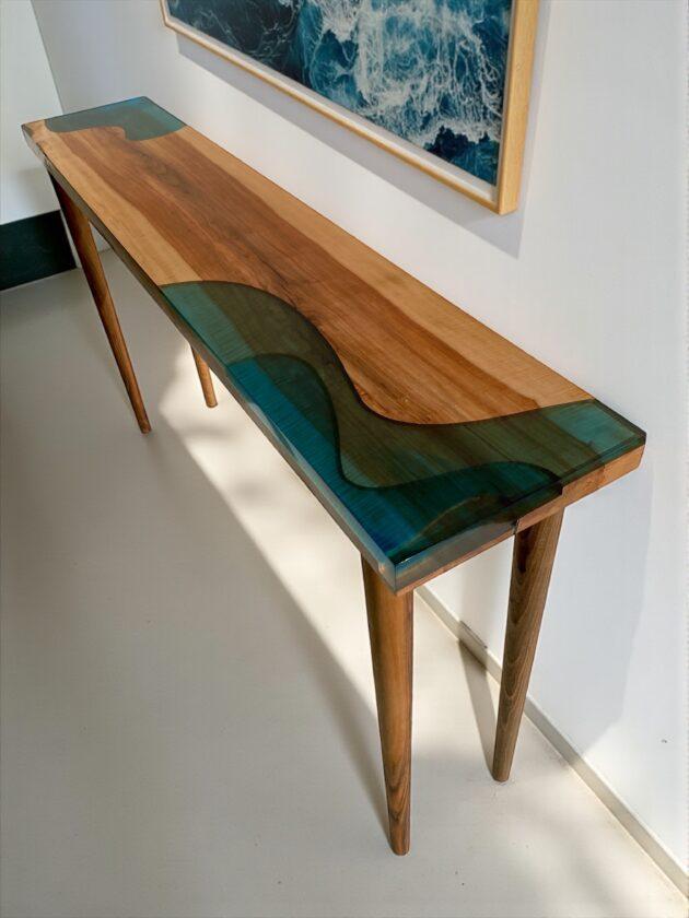 Cette table basse design bois et verre est une version revisité des table basses dites « rivières », intégrant de la résine epoxy. J’ai moi même réalisée plusieurs tables basses ou consoles de ce type, « Amazonia », « Coulée de lave », ou encore « Grand Canyon ». En effet, j’aime intégrer d’autres matériaux que le bois à mes créations et le […]