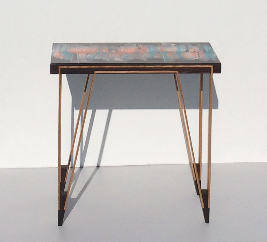 Au final, cette table me semble unique. De part son « plateau / tableau », mais également grâce à son piétement original et élégant je l’espère.