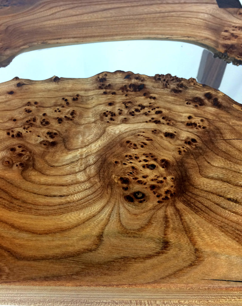 L’Orme est un arbre magnifique. La Loupe d’Orme, est une partie caractéristique de cette arbre. La Loupe d’Orme est un défaut de l’arbre, causé par des parasites et des départs de branche. Pour simplifier les choses, c’est une sorte de cicatrice interne. Curieux non ? Quoiqu’il en soit, cela donne un bois magnifique et rare. En effet, l’Orme à quasiment disparu des campagnes de France et d’Europe.