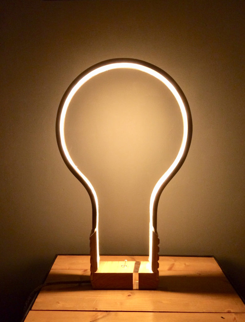 C’est en imaginant des courbes rondes et sensuelles, et avec la volonté de créer une lampe que j’ai eu l’idée de simplement reprendre la silhouette symbolique d’une ampoule.