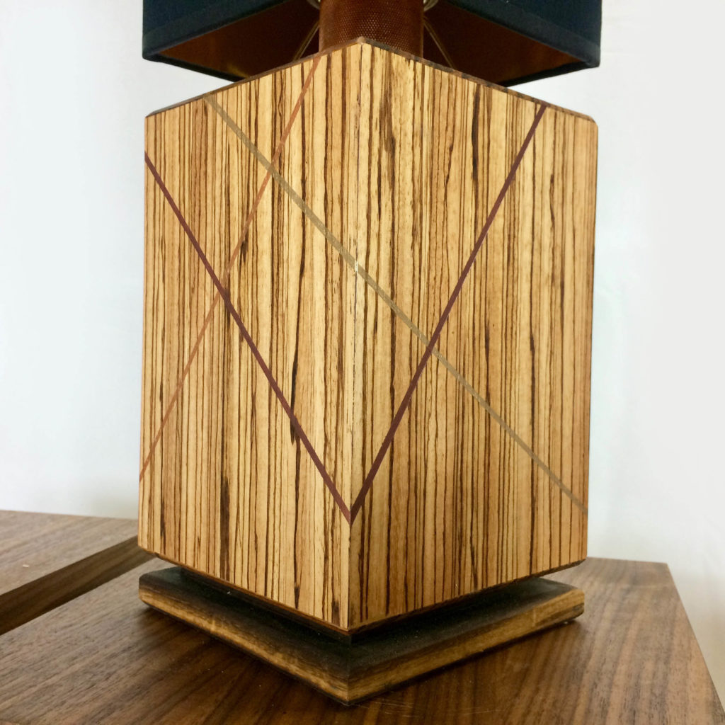 Au premier coup d’oeil on voit bien l’intérêt et l’originalité de cette essence bois, dont les dessins verticaux sont étonnamment réguliers. L’alternance de ces lignes brunes sur un fond clair, rend ce bois unique et vraiment beau selon moi. Ainsi donc, pour rendre justice à cette belle essence de bois, j’ai voulu allonger la base afin de profiter de ces lignes verticales.
