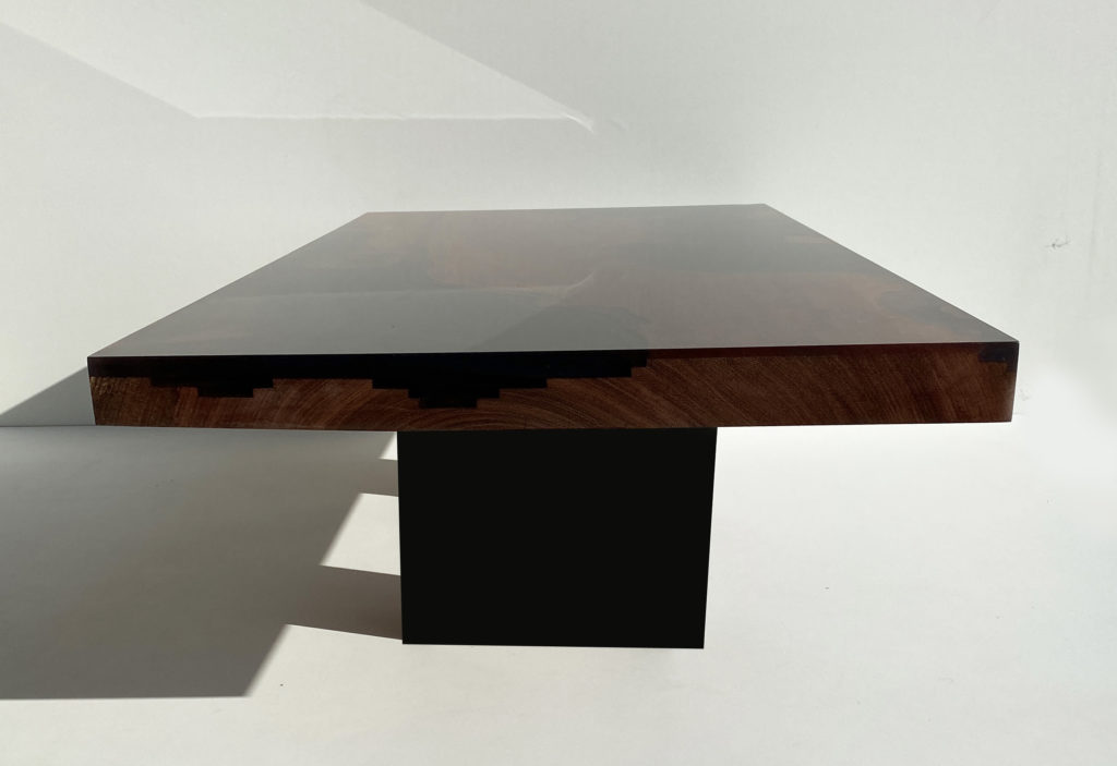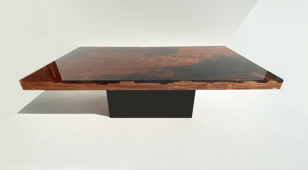 Un plateau de table basse réalisée avec un seul et unique morceau n’est pas banal. Ce magnifique plateau aux reflets rouge orangé, découpé d’un seul tenant, participe grandement au coté spectaculaire de cette table basse.
