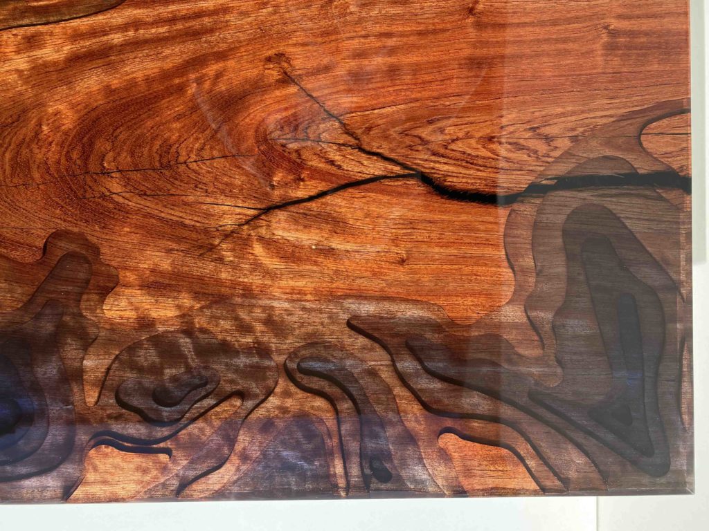 Quand j’observe les dessins d’un plateau en bois, je vois parfois des paysages. C’est comme cela que m’est venu l’idée de créer un paysage de fond marin, comme ceux que l’on voit dans les cartes topographiques.