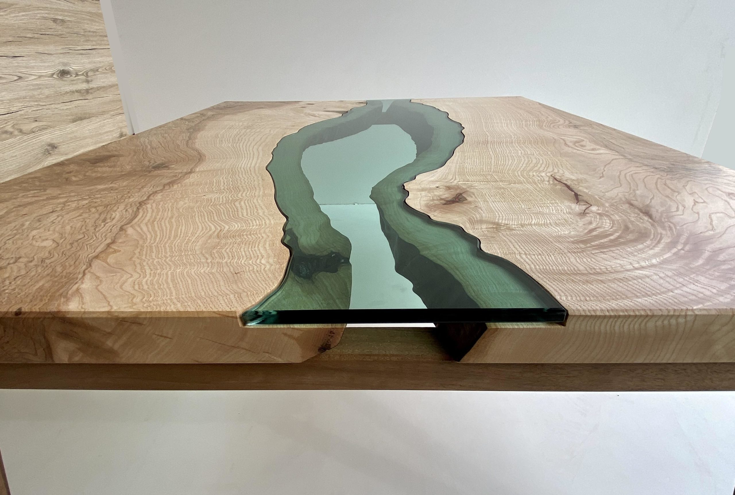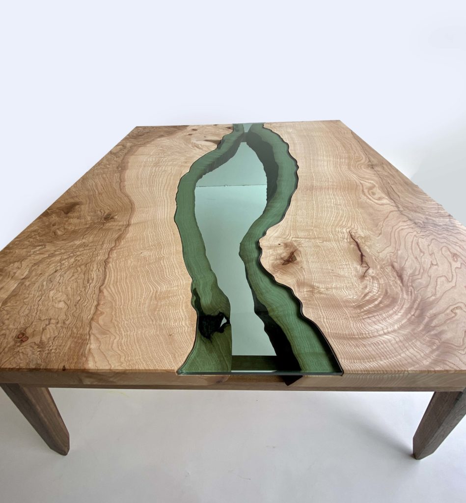 Ensuite, tout l’intérêt et donc la difficulté de l’ouvrage était d’ajuster parfaitement les lignes de cette rivière en verre au plateau de la table.