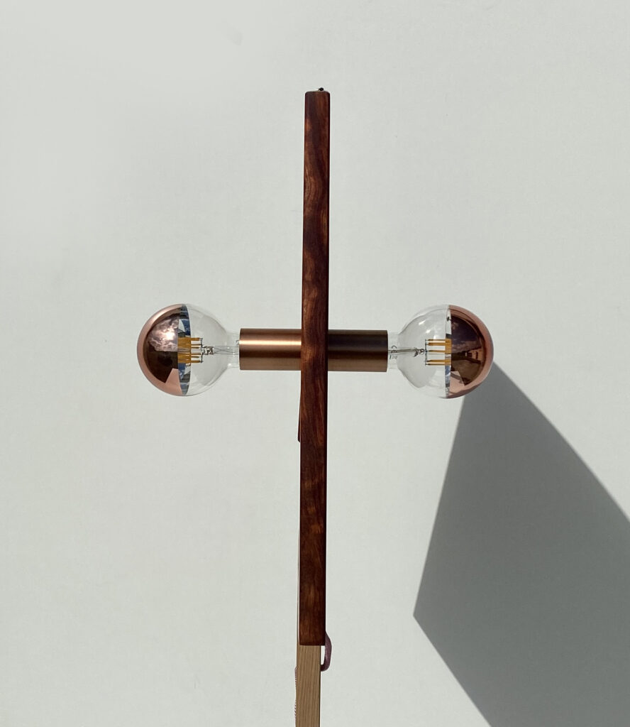 Chaque pièce est fabriquée artisanalement, avec une attention portée aux textures, aux finitions et à la qualité de lumière. L’utilisation de deux ampoules (culot standard, LED recommandées) permet d’ajuster le flux selon l’usage : ambiance douce, éclairage ponctuel, lecture. Les finitions peuvent être adaptées (mat, huilé/ciré) afin de conserver le toucher du bois et la nuance du noir sur le piétement.