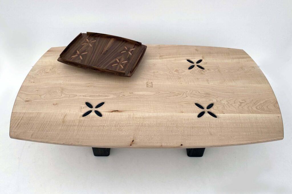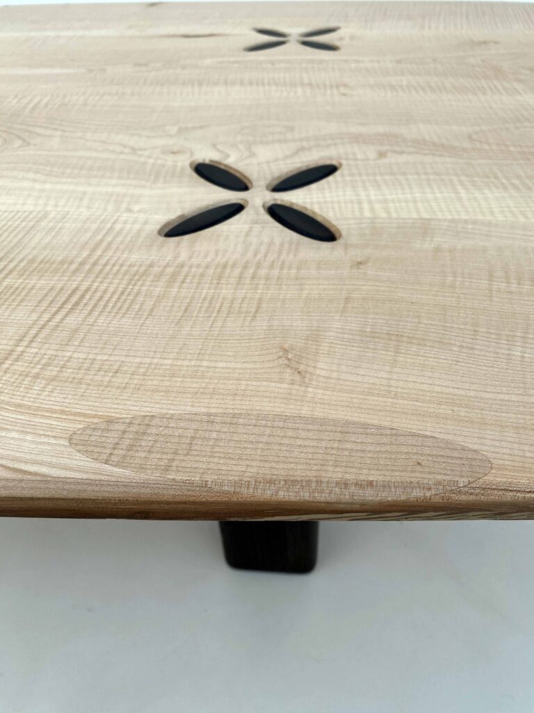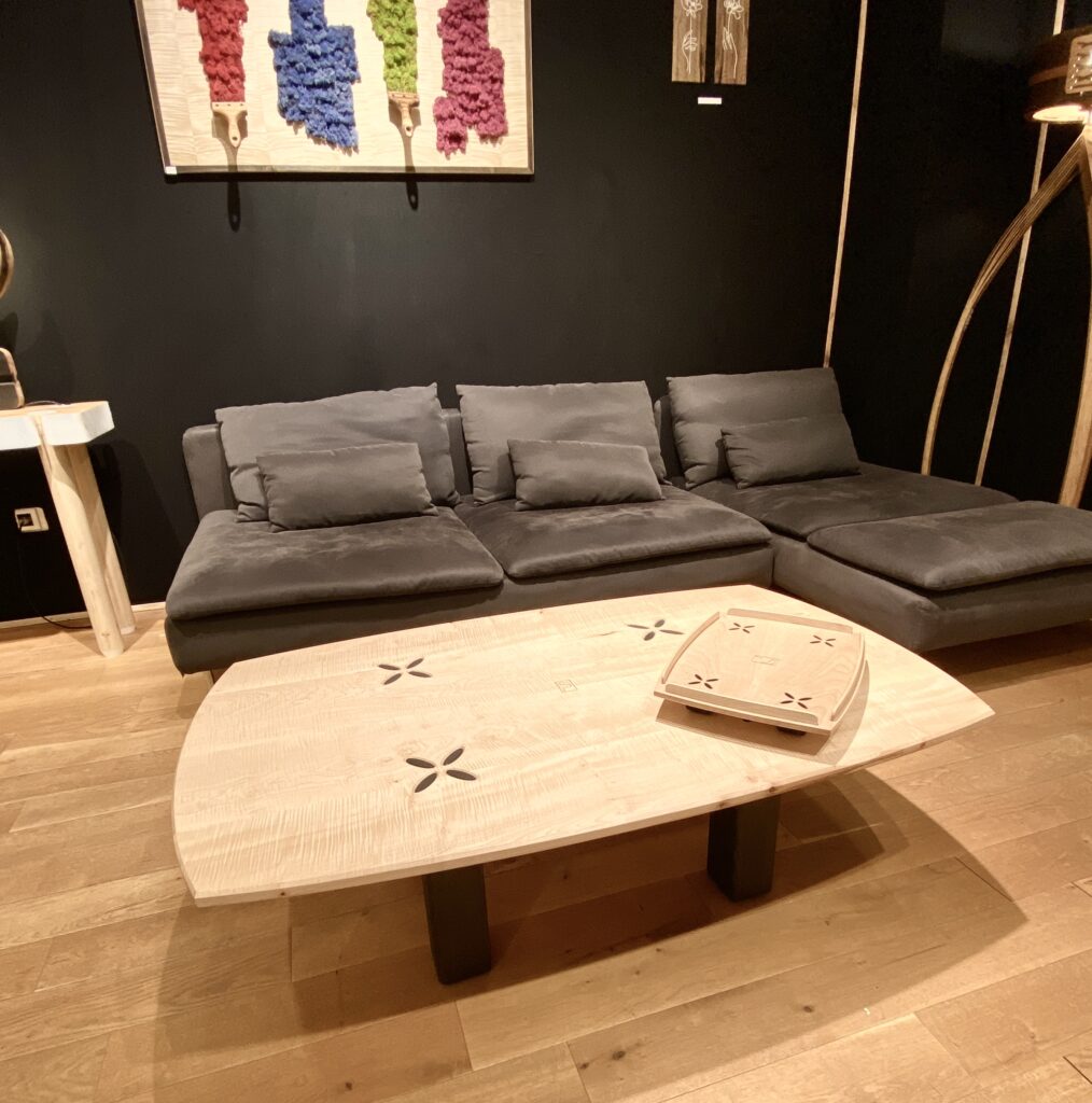 Ce bois rare, lumineux et raffiné, révèle sous la lumière des nuances changeantes, conférant à chaque pièce un caractère unique.