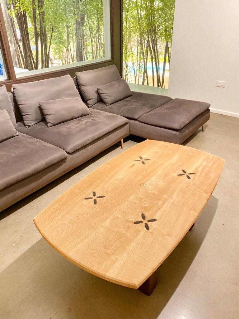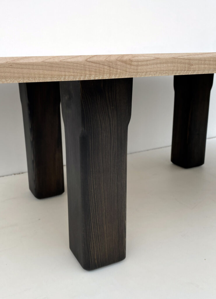 La table basse “Sisters” illustre la quête d’un équilibre parfait entre design épuré et singularité artisanale.