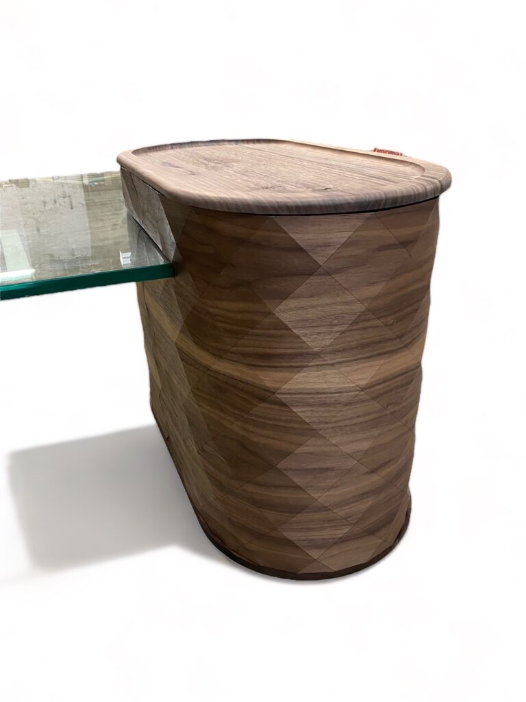 La table basse Modulus incarne l’alliance parfaite entre bois et verre, entre design contemporain et fonctionnalité évolutive. Conçue comme une pièce sculpturale, elle invite à repenser l’espace à travers le jeu des formes, de la lumière et des matières.