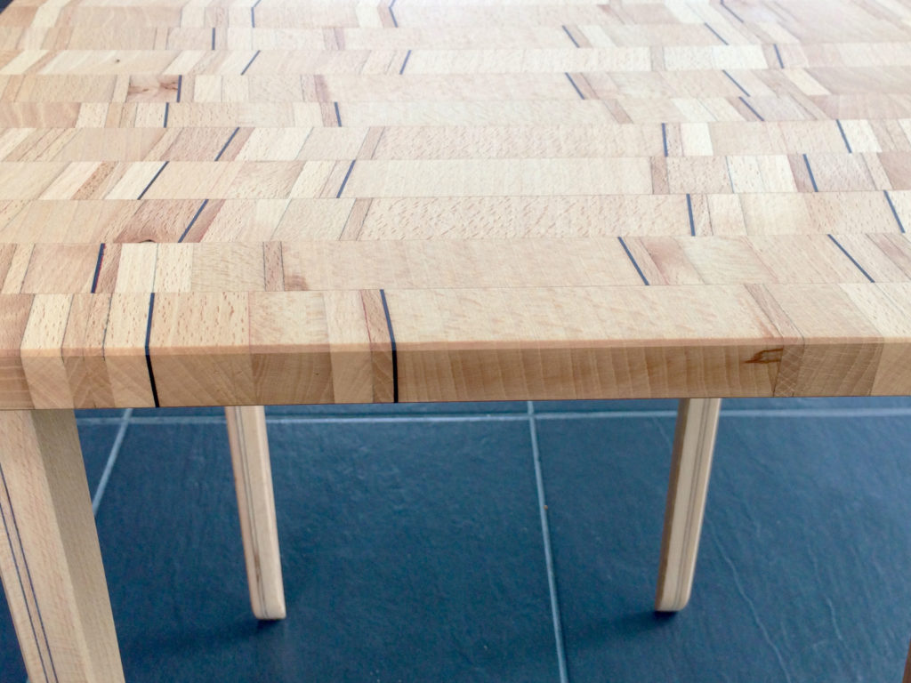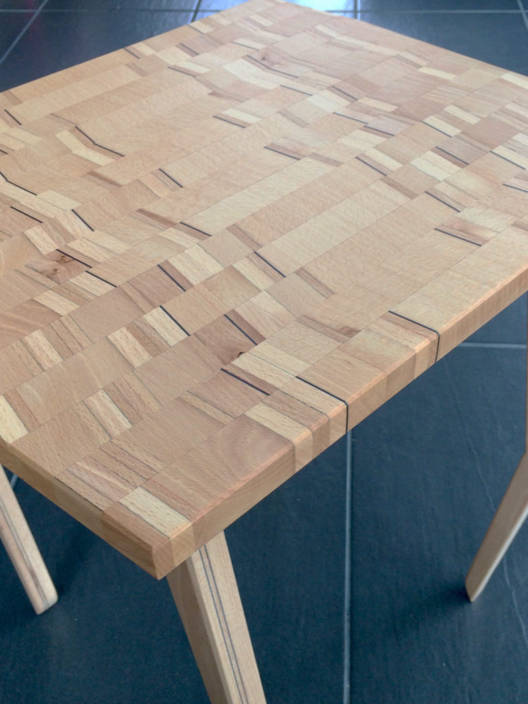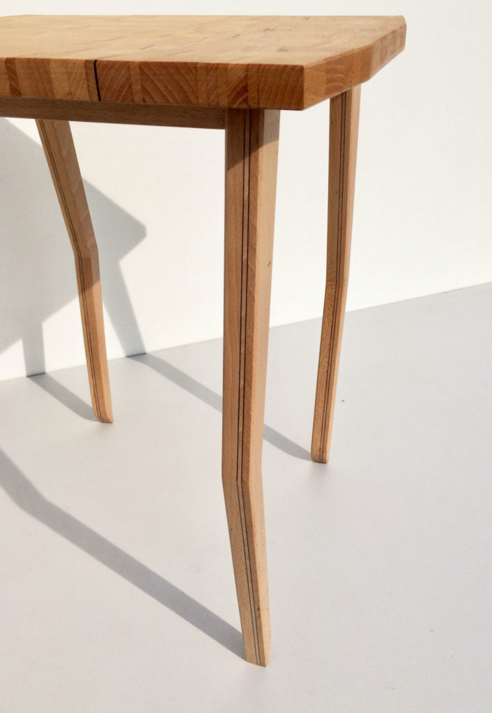 Le bois n’en finit pas de m’étonner. Le bois de hêtre est un bois clair qui n’a pas la réputation d’offrir de fortes différences de couleur comme le noyer par exemple. Et pourtant ! Le plateau de ce charmant guéridon design, composée uniquement de bois de frêne prouve bien le contraire.