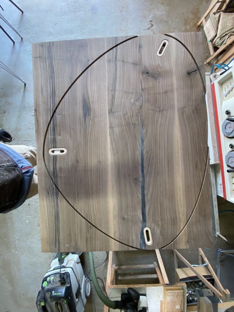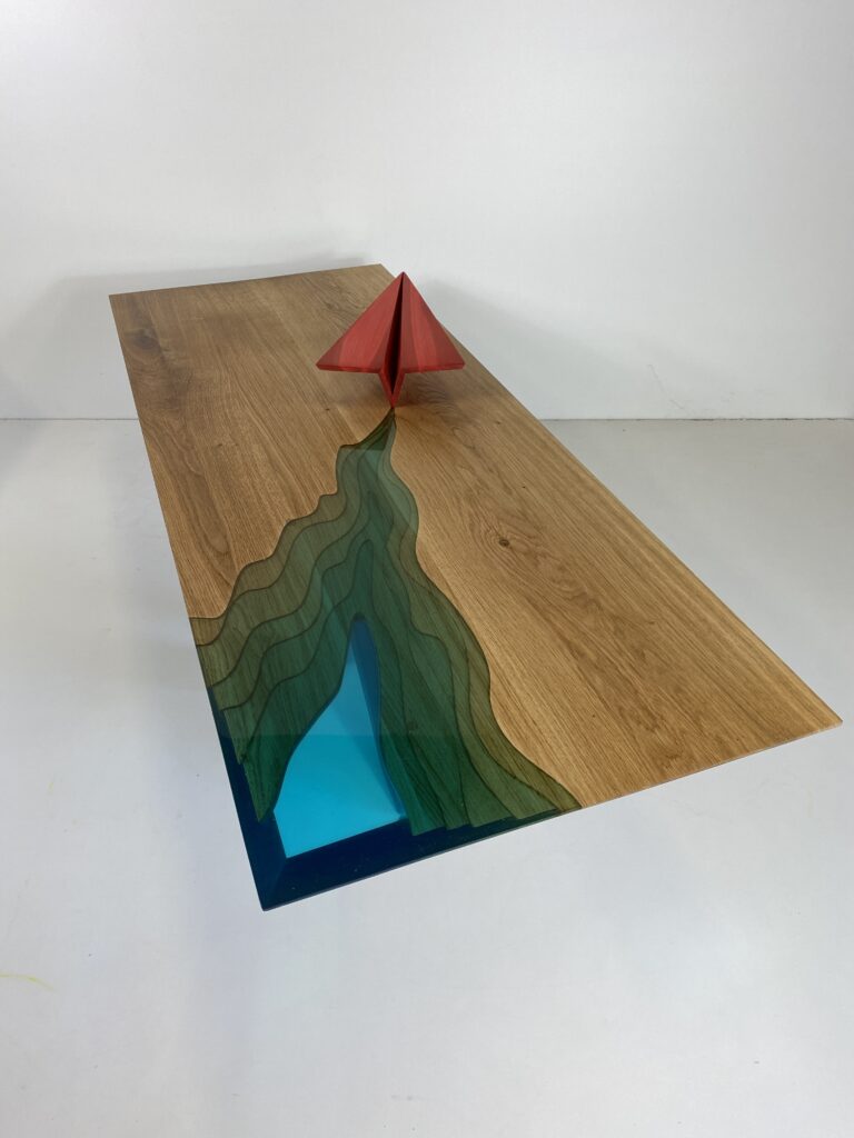Pour un ingénieur en aéronautique passionné d’avions – table basse en Chêne massif et résine epoxy