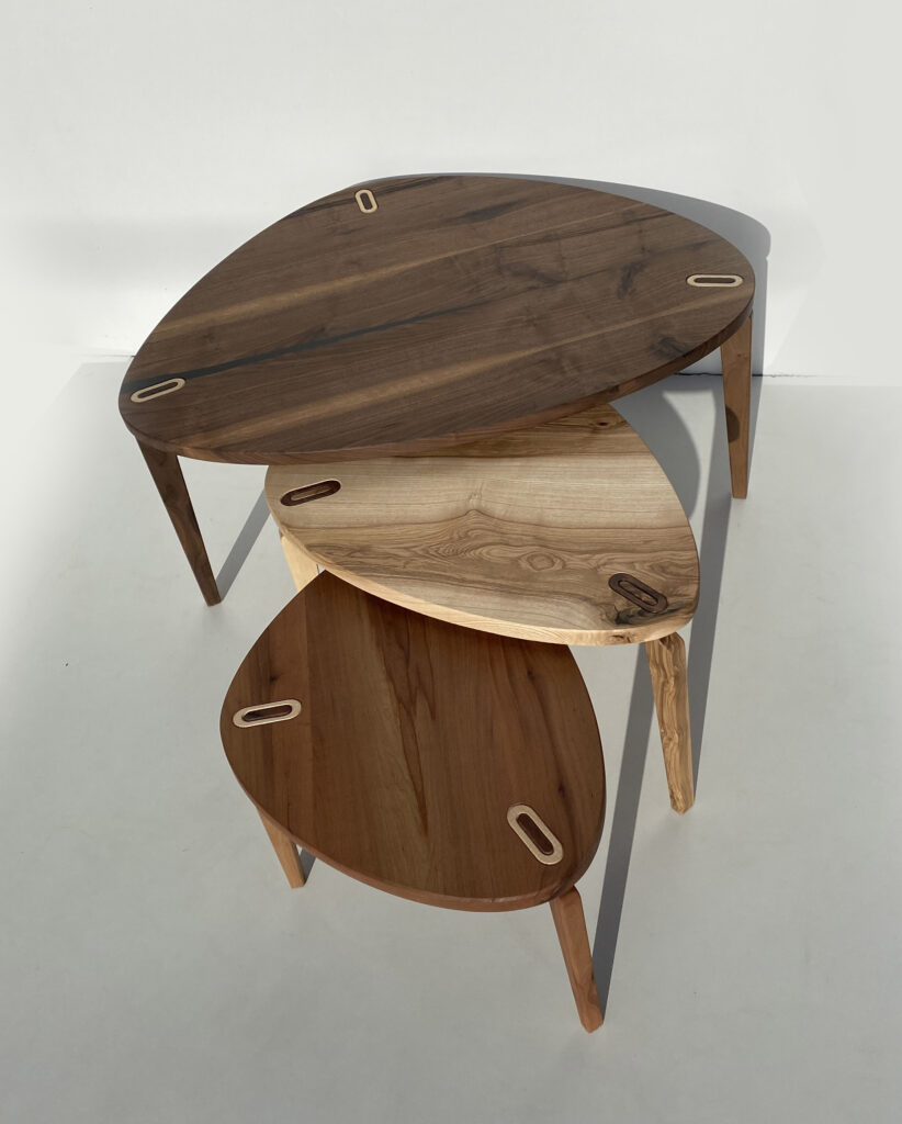 Pour un couple de Nantais – Tables gigognes avec 3 essences de bois différentes