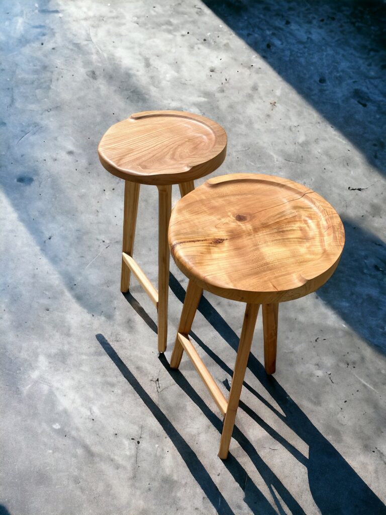 Tabourets de bar en Orme rouge et Merisier
