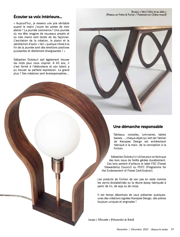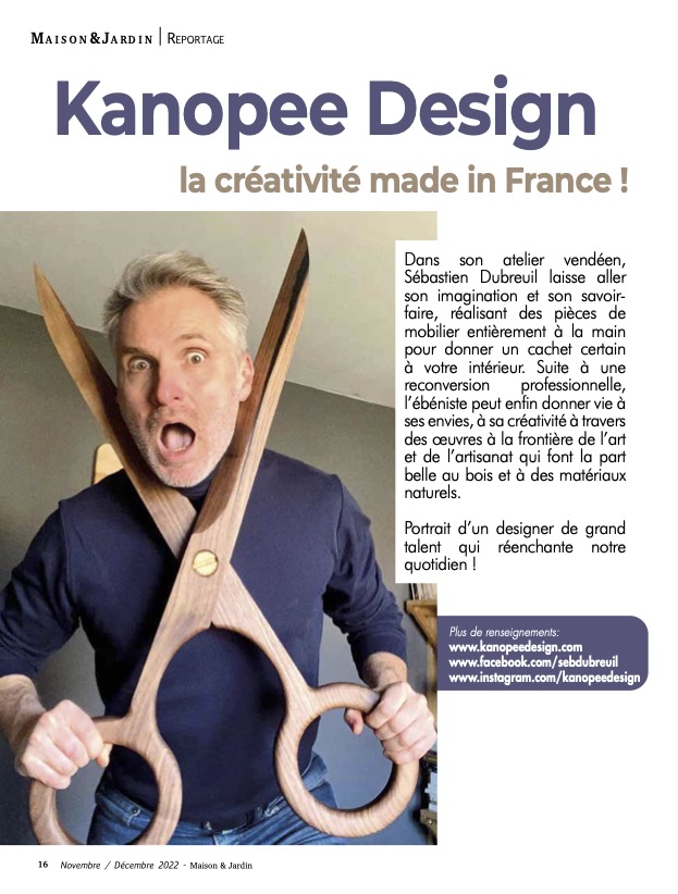 Kanopee Design dans le magazine Déco « Maison & Jardin » de Novembre – Décembre 2022