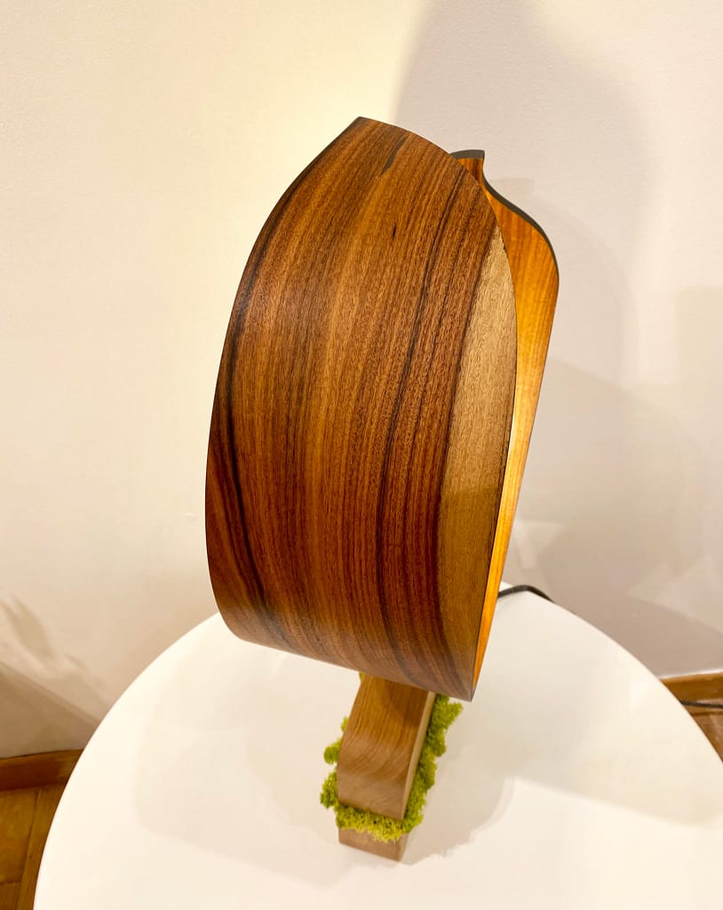 L’abat jour est réalisé en Palissandre Dos Santos, une essence de bois exotique Brésilienne. Les couleurs et nuances chaude de cette essence de bois sont incroyables.