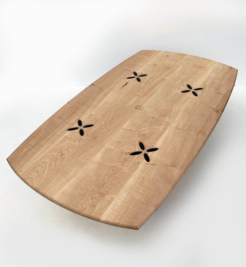 Ce bois rare, lumineux et raffiné, révèle sous la lumière des nuances changeantes, conférant à chaque pièce un caractère unique.